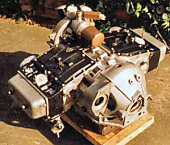 the left side exhaust manifold can be seen. The clutch housing is detachable; gearbox and